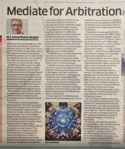 The Government’s recent decision to adopt Mediation in place of Arbitration is somewhat puzzling. Until recently, Arbitration was being actively promoted as an alternative dispute resolution mechanism and dumping arbitration process so abruptly is not and cannot be any solution as rightly pointed out by Shri M.C. Govardhana Rangan.